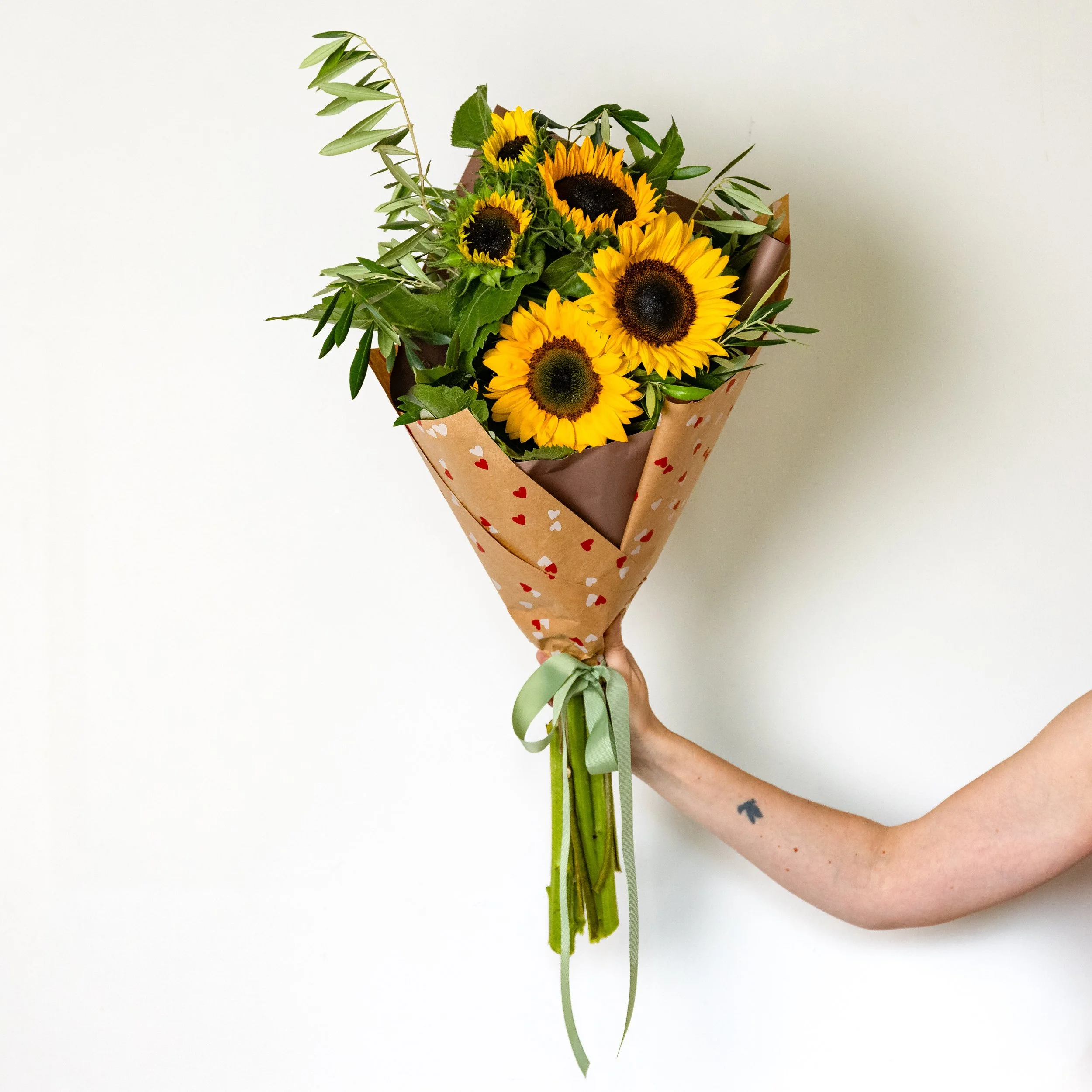 Sunshine in the form of sweet Sunflowers. Mixed in with complimentary foliage and wrapped ready to gift.